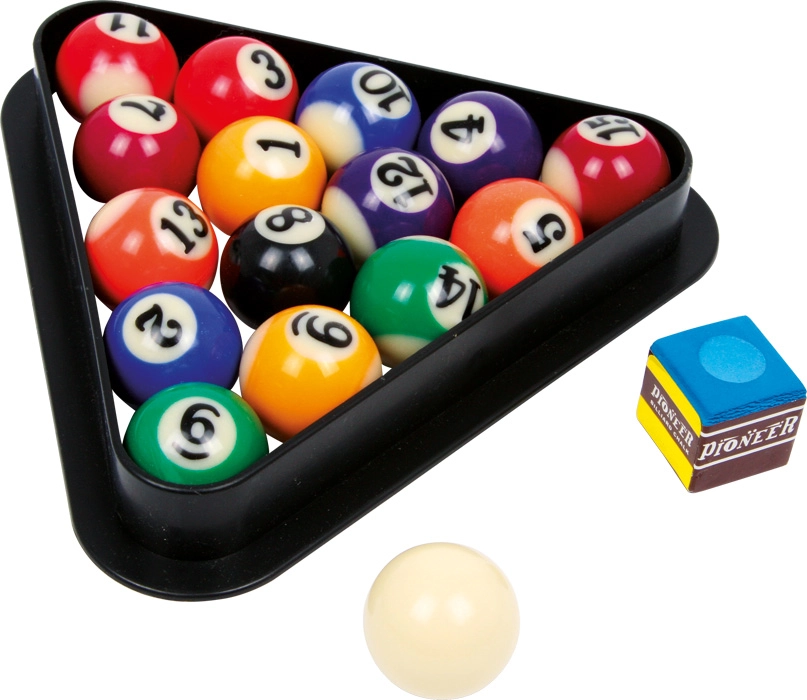 • Комплектът съдържа: 2 щеки, билярдни топки, триъгълник и тебешир.