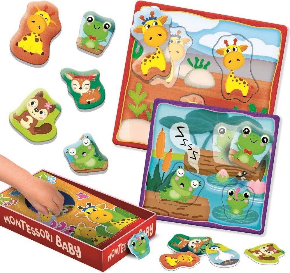 Открийте игривия дидактически комплект, в който децата съчетават малките животни с тяхната мама и татко, опознават животните и естествената им среда, докато тренират търпение, внимание и фината моторика. Комплектът е разработен за най-малките – простите контурни елементи се държат удобно и се вграждат лесно.