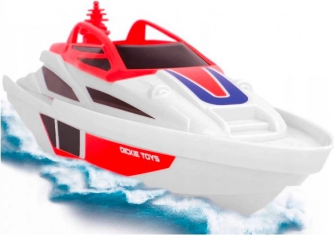 RC Sea Cruiser от марката DICKIE TOYS е чудесен избор за първи плавания и за малки ентусиасти на водни модели. Елегантен дизайн, пъргава езда и безопасна работа правят тази моторна лодка перфектна играчка за басейн, езерце или малко езеро. Благодарение на автоматичното стартиране на моторите едва след контакт с вода, използването е безопасно и интуитивно.