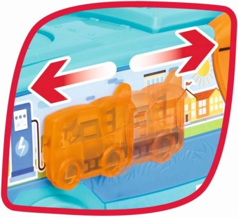 Децата могат да отварят вратите и да движат страничния елемент, което подпомага фината моторика и реалистичните градски сценки.