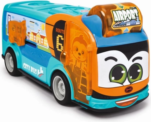 Забавен градски автобус за най-малките, който носи часове креативна игра. Предлага свободен ход за лесно придвижване, въртяща се дрънкалка с крайна станция, отварящи се врати и страничен подвижен елемент. Идеалният размер 22 см пасва отлично в детските ръчички.