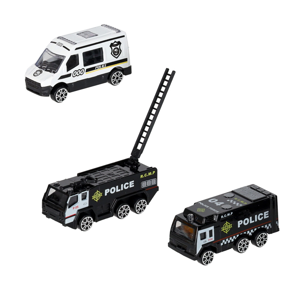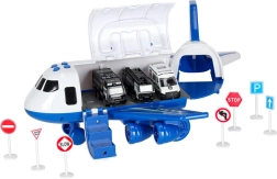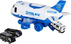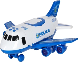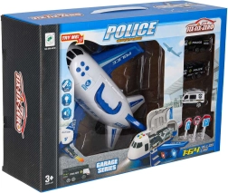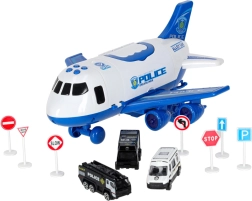 Вътре в самолета се побират 3 полицейски превозни средства и комплект от 7 знака, които помагат на децата да разберат правилата за движение и работата на службите за спешно реагиране. Самолетът има практична дръжка за носене, сваляеми крила за пестене на място и плавно въртящи се колела за динамични кацания.