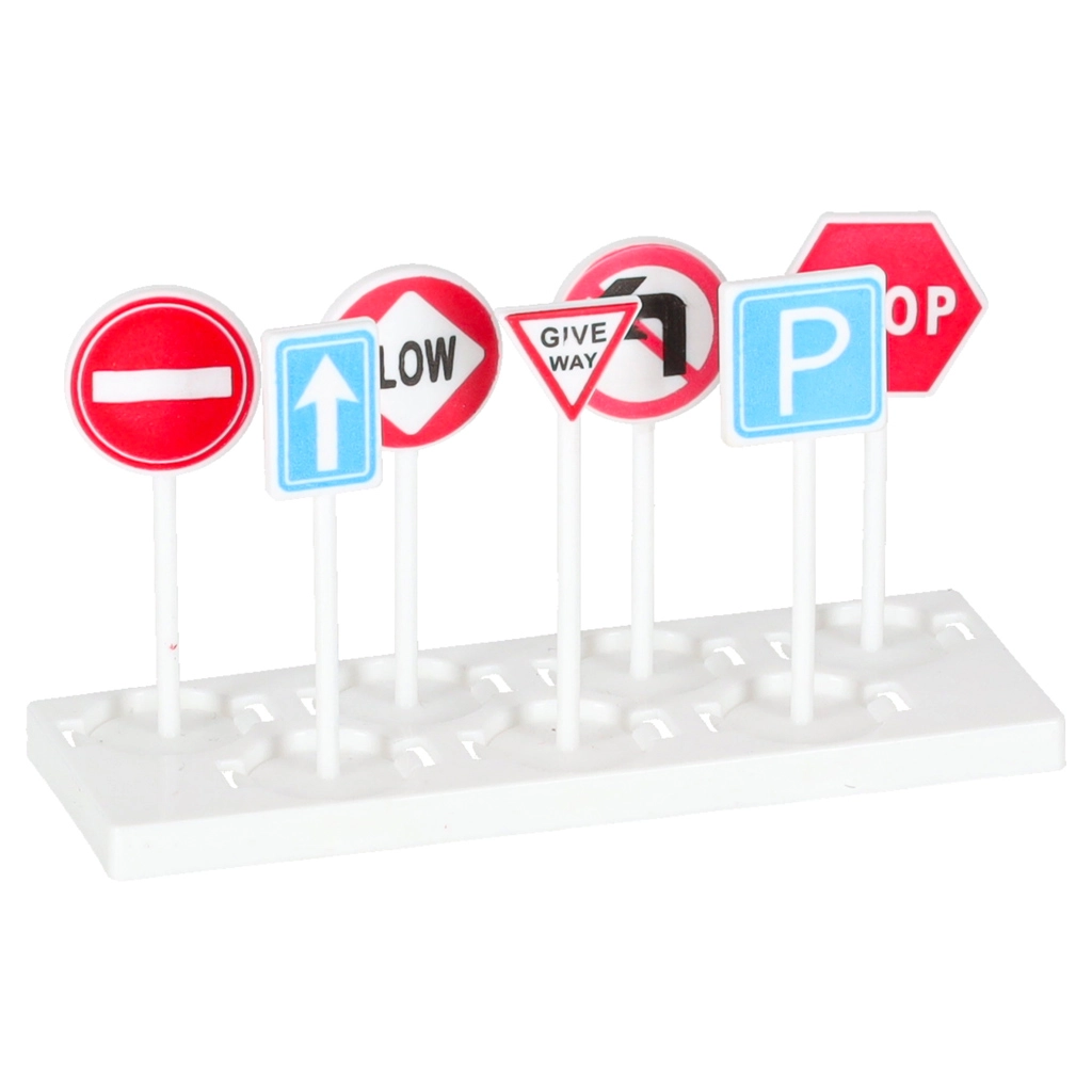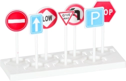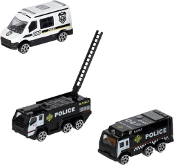 Включен е комплект от 3 полицейски превозни средства и 7 пътни знака. Децата ще упражняват правилата за движение и екипната работа.