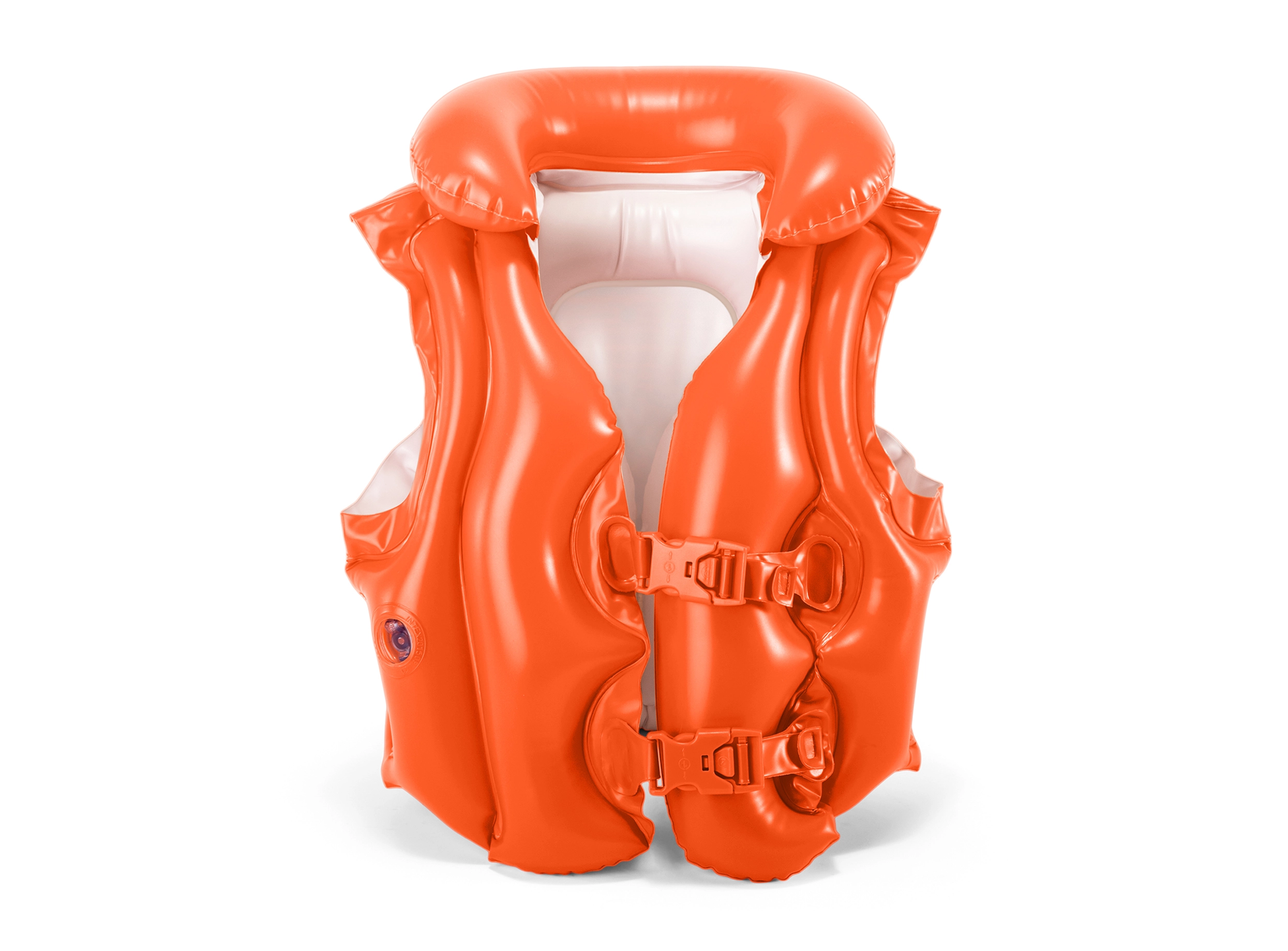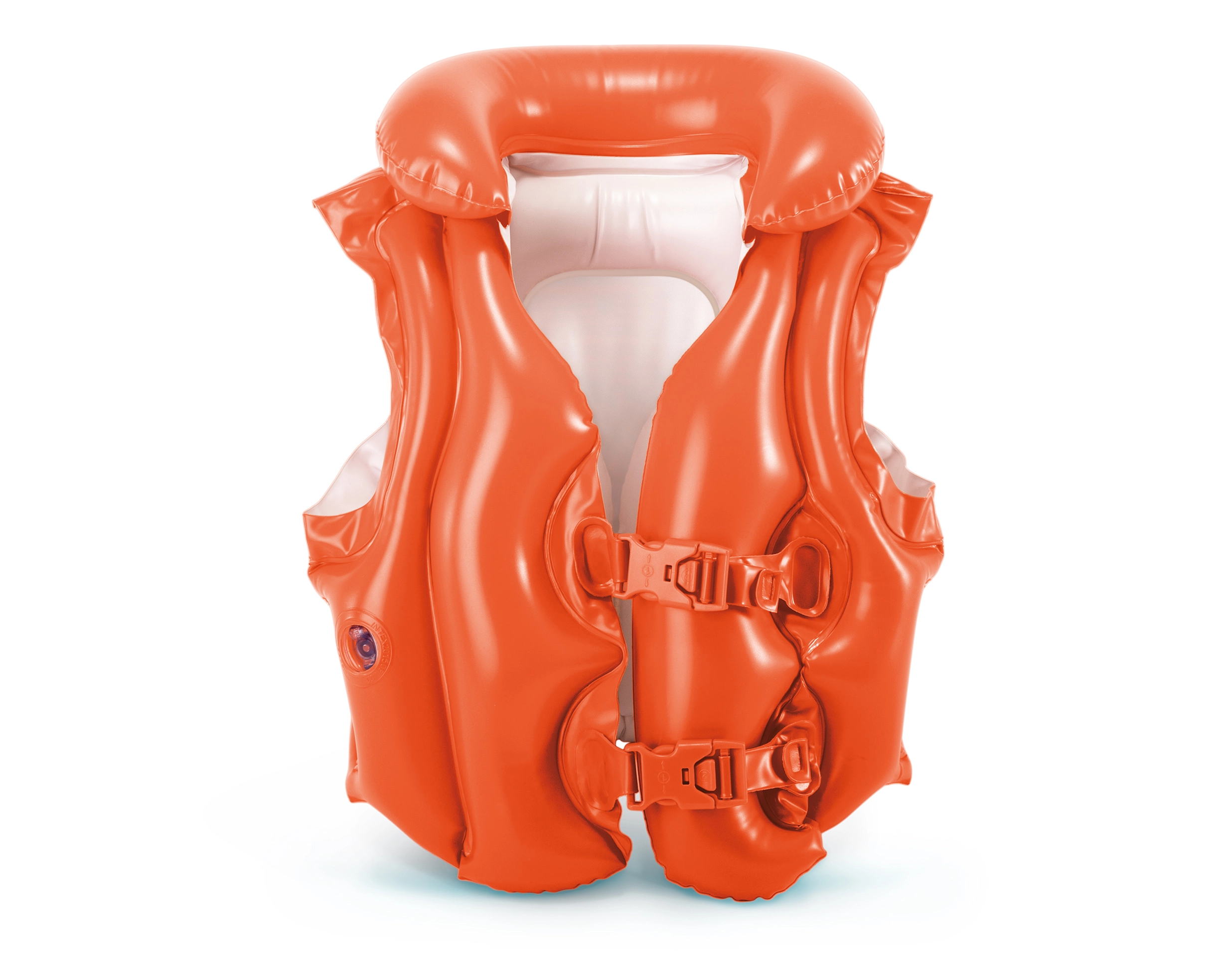 Продуктите на INTEX отговарят на строги стандарти за безопасност и са проектирани да съчетаят забавление във водата с максимална безопасност. Жилетката е чудесно допълнение към други плувни помощни средства като пояси, надуваеми ръкавки или детски лодки.