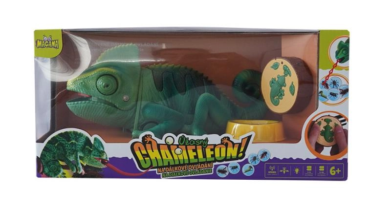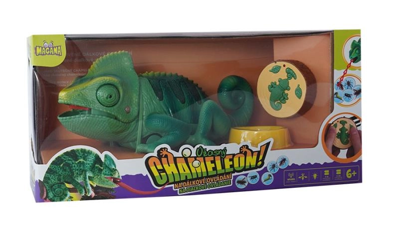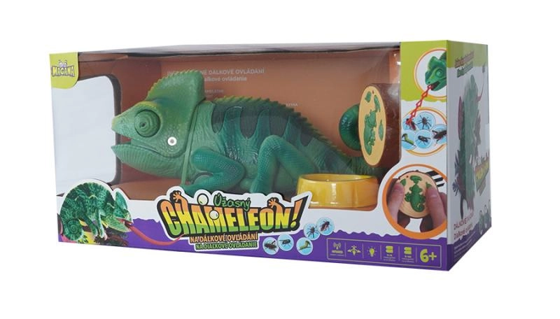 Играчката позволява управление на движенията напред, назад, наляво и надясно. Гърбът на хамелеона може да свети в пет цвята, а подвижните му очи, опашка и изтеглящ се език позволяват интерактивна игра – например улавяне на „насекоми“ от включените пластмасови дискове. Тази играчка е отличен избор за деца, които са очаровани от технологии с елементи от природата.