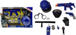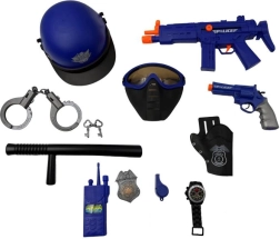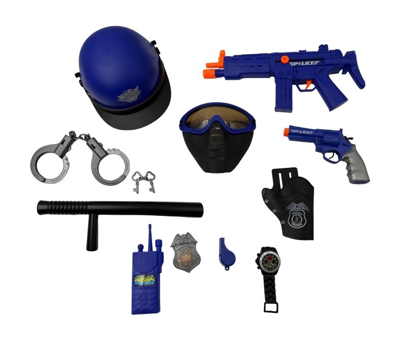 Станете герой на улицата с този пълен полицейски комплект! Комплектът включва каска, пистолет и други аксесоари за реалистична игра на полицай. За пълна функционалност са необходими 3× 1.5V AG13 батерии (не са включени в комплекта). Страхотен подарък за деца, които обичат динамични приключения и креативни игри с реалистични звуци и ефекти.