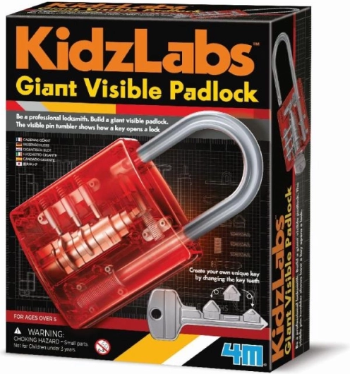 Потопете се в света на механиката с големия прозрачен висящ катинар от KidzLabs. Този катинар не предлага само забавление, но и обучение за деца от 5 години нагоре. Визуално привлекателният катинар с червена прозрачна пластмаса позволява на децата да видят целия механизъм отвътре и така да научат как работят ключалките. Идеален за малки изследователи.