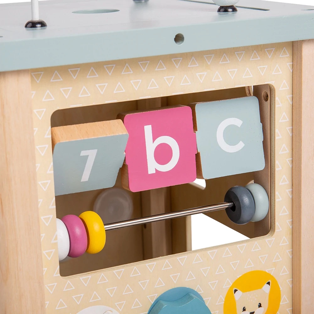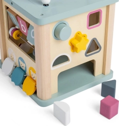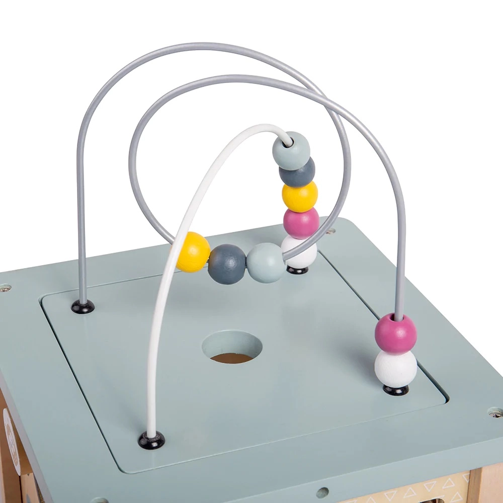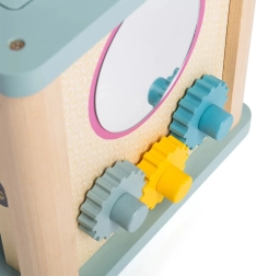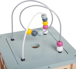 Открийте многофункционалното моторно кубче от висококачествено 100% FSC дърво, което ще забавлява децата с часове. На всяка страна ги очаква различна активност – сортер, топкова писта, зъбни колела и други. Комбинацията от естествено дърво и нежни пастелни цветове е идеална за момичета и момчета. Играчката подпомага развитието на моториката, комуникацията и разпознаването на числата и е безопасна за деца благодарение на щадящите материали с FSC сертификация.