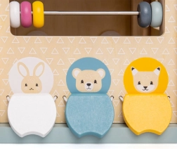 Нежните пастелни цветове и гладката изработка приканват към многократна игра, а разнообразните активности подпомагат различни умения – от фината моторика до езиковото развитие. Сертификацията FSC гарантира щадящ произход на дървесината и отговорно производство.