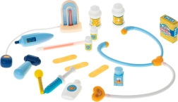 Лекарският комплект включва всички необходими инструменти за игра на доктор, като стетоскоп, термометър, спринцовка и други.
