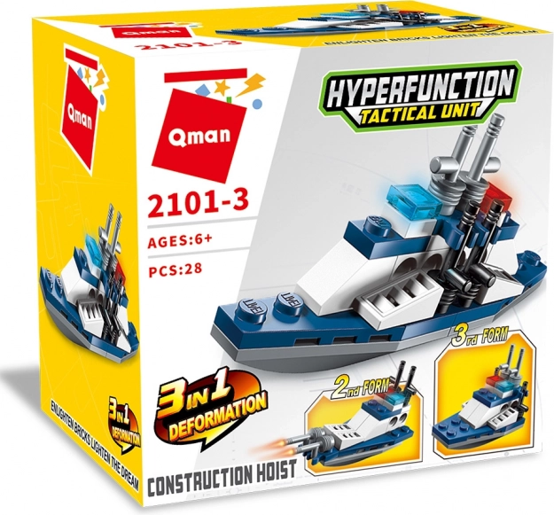 Насладете се на много забавление с конструктор, който вдъхновява за създаване и преработки. От компактния комплект с 28 елемента сглобявате три различни модела – от бърза лодка до ескортен кораб с детайли като антени и светлини. Малките размери на опаковката са удобни за път и играта може да започне навсякъде.