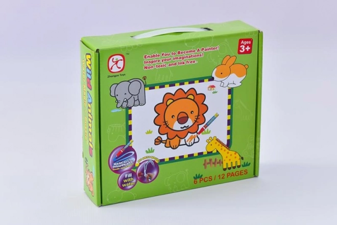 С помощта на включения маркер, напълнен с вода, децата просто оцветяват белите зони на картинката и наблюдават как цветовете магически се появяват. След изсъхване всичко се връща в първоначалния си вид и забавлението може да започне отново.