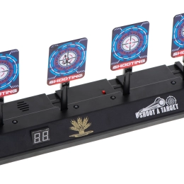 Електронната мишена е чудесен избор за тренировка на точността и състезателно забавление у дома. Четирите самостоятелни цели позволяват различни режими на игра – от скоростни дуели до пестелива стрелба с възможно най-малко изстрели. След всяко уцелване целта пада, при уцелване на всичките четири получавате 1 точка и мишените автоматично се връщат в изходна позиция.