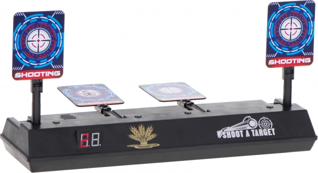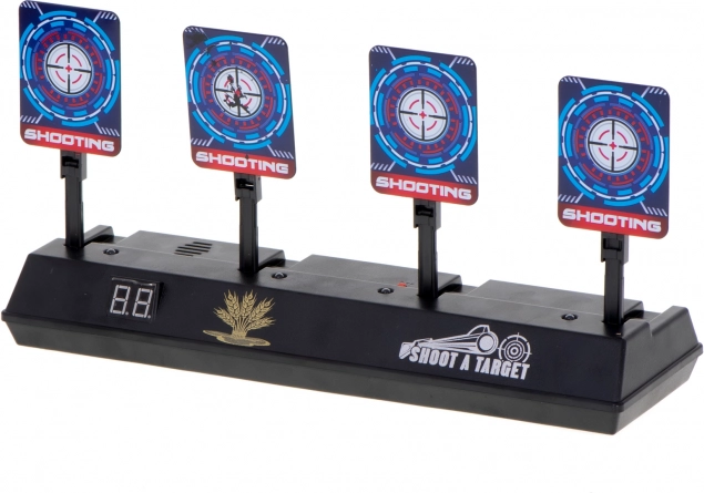 LED дисплеят ясно отчита точките, а след уцелване на всичките четири цели мишените сами се вдигат – играта продължава без ръчно настройване.