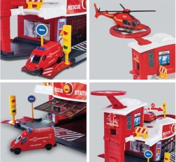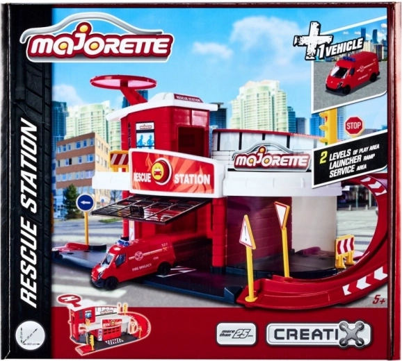 Спасителната станция Majorette Creatix е най-доброто допълнение към всяка игрова колекция. Станцията има две нива за разнообразни игрови сценарии, включително хелипад и стартова рампа за колички. Децата могат да разиграват сцени като истински спасители благодарение на включените пътни знаци и допълнителните аксесоари.