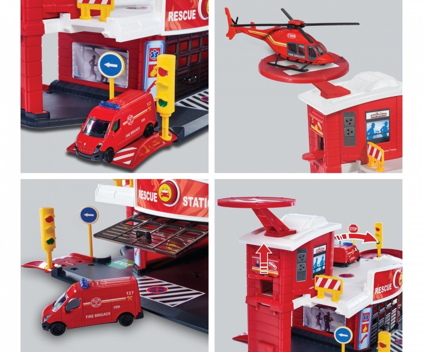 Благодарение на специалния хелипад и рампата децата могат да пресъздават реални спасителни акции и да започват мисията си от втория етаж.