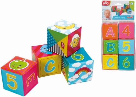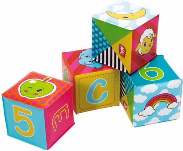 Този комплект меки кубчета е идеален за първи игри, строене и учене. Благодарение на безопасната мека изработка те са подходящи за малки детски ръчички и подпомагат развитието на сетивата, координацията око–ръка, както и разпознаването на форми, цветове и символи.