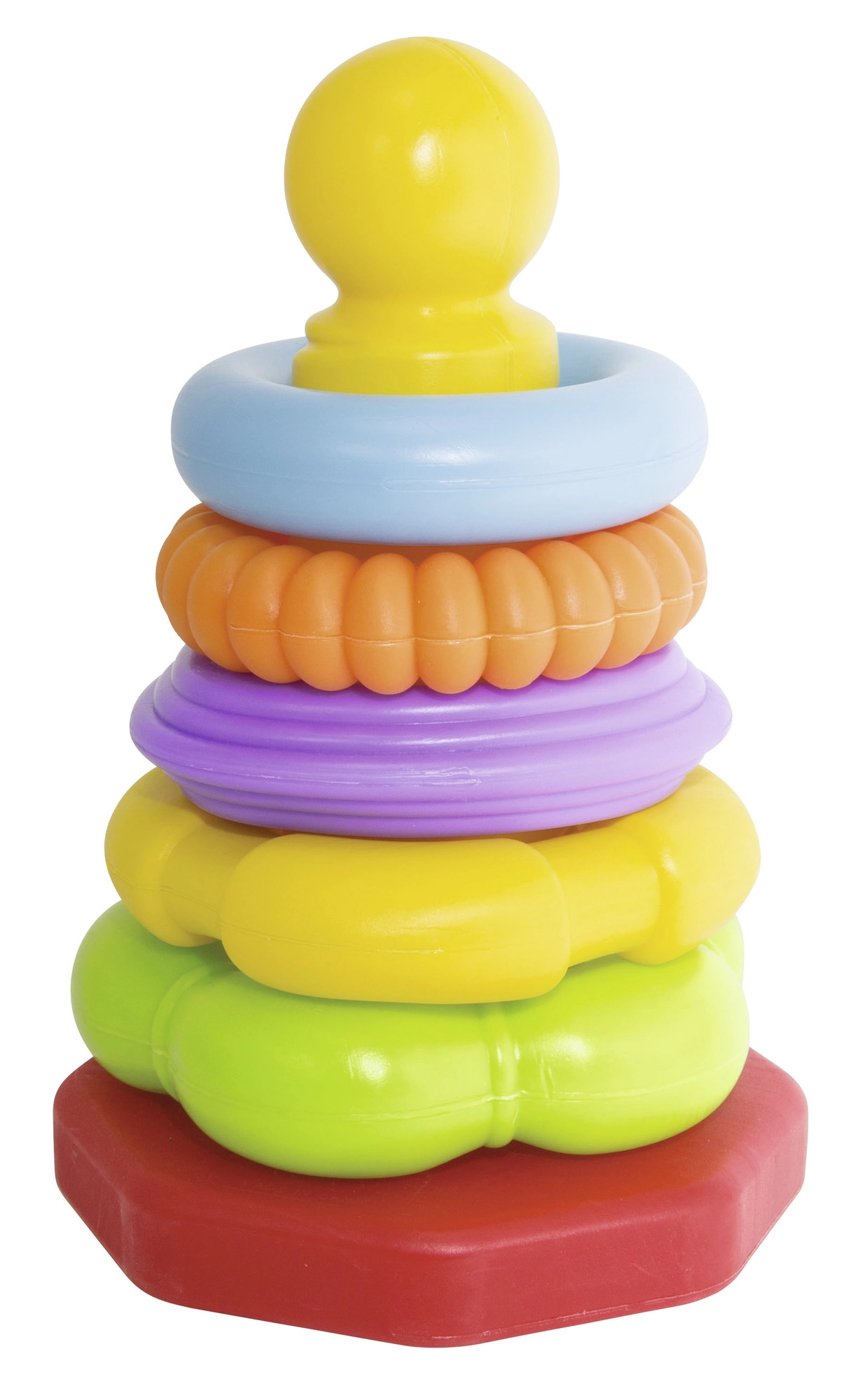 Пирамида с цветни пръстени е идеалният помощник за развитие на моториката и умението за комбиниране при децата. Съдържа пет разноцветни пръстена с различни форми.