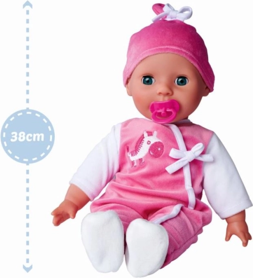 Куклата има меко тяло и затварящи се очи, което я прави реалистичен избор за децата. Предлага 24 различни детски звуци, които ѝ придават автентичност.