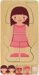 Тази качествена дървена подредилка насочва децата към откриването как е устроен човекът. Малките изследователи подреждат слоевете в ред: скелет → органи → мускули → тяло → облекло. Така се получава нагледен образ на човешкото тяло, който подкрепя любопитството и естественото учене без натиск.