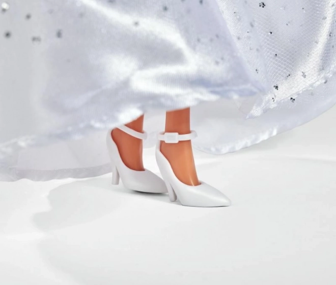 Роклята със сребърни брокати и нежното болеро правят куклата истинска принцеса. Идеална за тържествени истории и за украса в детската стая.