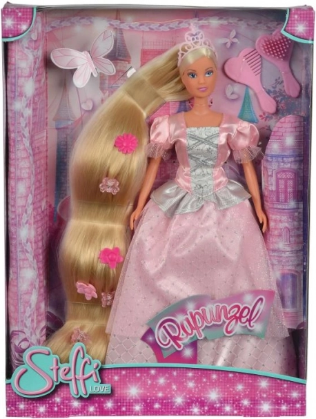 Куклата Стефи Рапунцел има прекрасна руса коса, която можете да сресвате и стилизирате според въображението си. Тя е с височина 30 см, облечена в елегантна официална рокля с брокат и допълнена с подходяща корона. Дългата ѝ коса е идеална за създаване на впечатляващи прически.