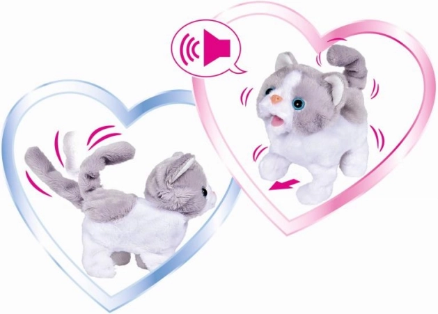 Това сиво-бяло плюшено котенце CHICHI LOVE е изключително меко на допир и в същото време пълно с изненади. Благодарение на интерактивните функции носи на децата още повече радост – може да се движи, да маха с опашка и издава реалистични звуци, които оживяват играта.
