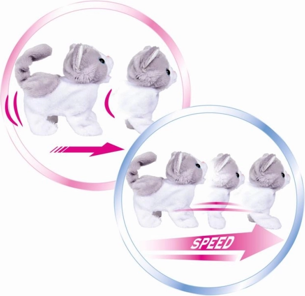 Очарователното интерактивно котенце от мек плюш ще зарадва всяко дете. Движи се с две скорости, мята опашката и издава забавни звуци. Идеален спътник за ежедневна игра и гушкане.
