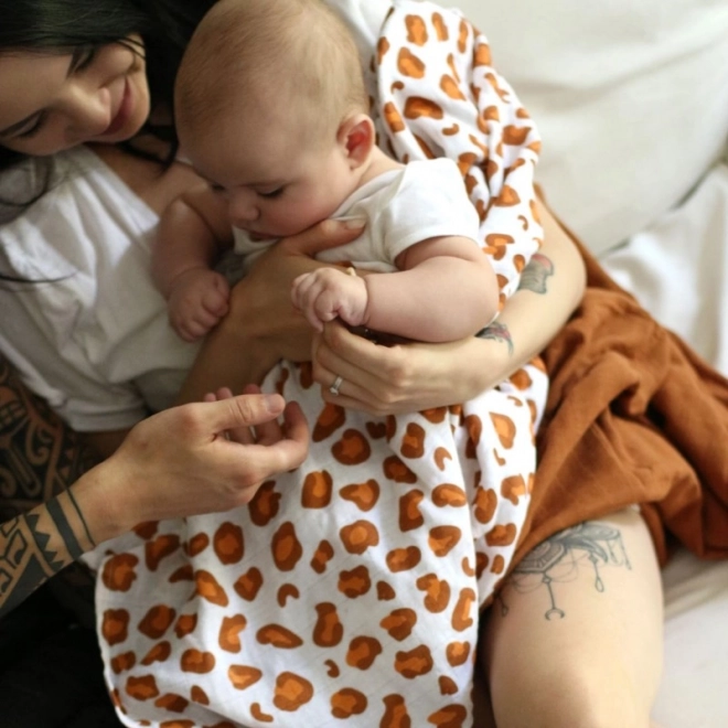 Благодарение на щедрите размери 120 × 120 см е идеална за повиване, покриване и ежедневна грижа у дома и в движение. Стилният мотив бял леопард ще зарадва родители, които търсят практичен аксесоар с модерен дизайн.