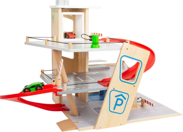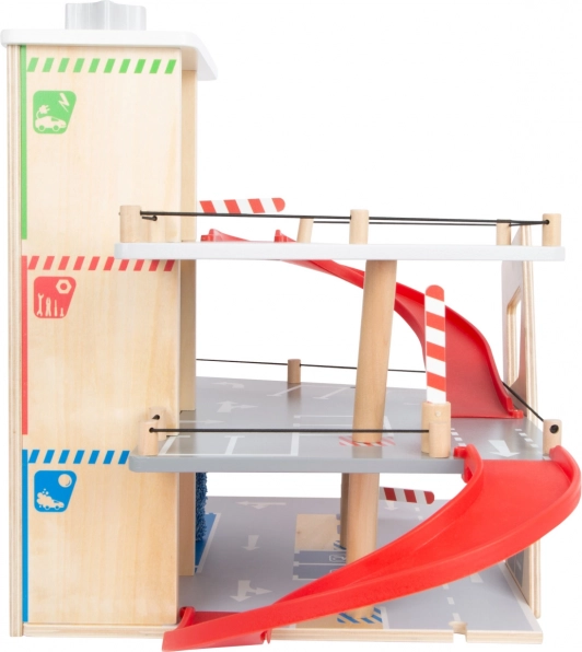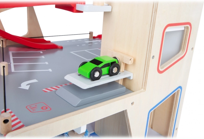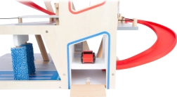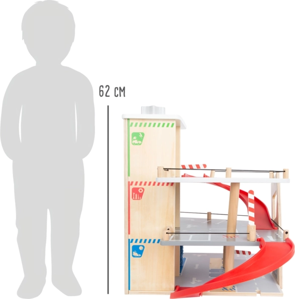 Този премиум паркинг от висококачествен шперплат предлага три богато оборудвани нива, свързани с функционален асансьор и две плавни рампИ. Децата могат да паркират, зареждат гориво, зареждат ток, мият и ремонтират – всичко на едно място, с реалистични елементи и страхотна играемост.