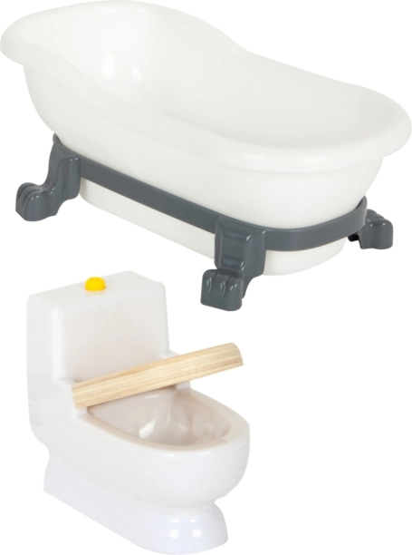 Детайли като функционален звънец, плъзгащи се врати, отваряеми прозорци и нощно шкафче с чекмеджета добавят реализъм и интерактивност. Мебелите с дървени и пластмасови елементи са част от комплекта, което засилва автентичното изживяване.