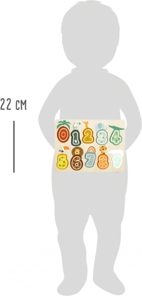 Този образователен дървен пъзел в пастелни цветове съчетава радостта от играта с ученето. Децата лесно хващат и поставят 10 релефни дървени цифри в правилните отвори, като така развиват фина моторика, координация око–ръка и логическо мислене. Цветните илюстрации на сафари животни стимулират въображението и задържат вниманието.