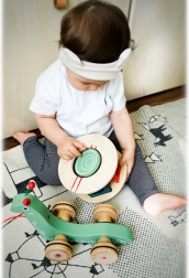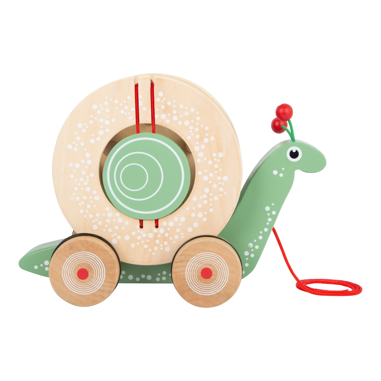 Дърпаното охлювче е идеално за подпомагане на двигателните способности и баланса на децата. Прекрасен приятел за първите разходки.