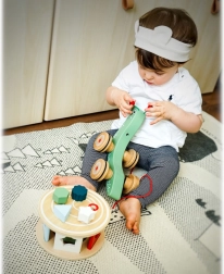 Съдържа пет различни форми за сортиране, които подпомагат когнитивното развитие и фината моторика.