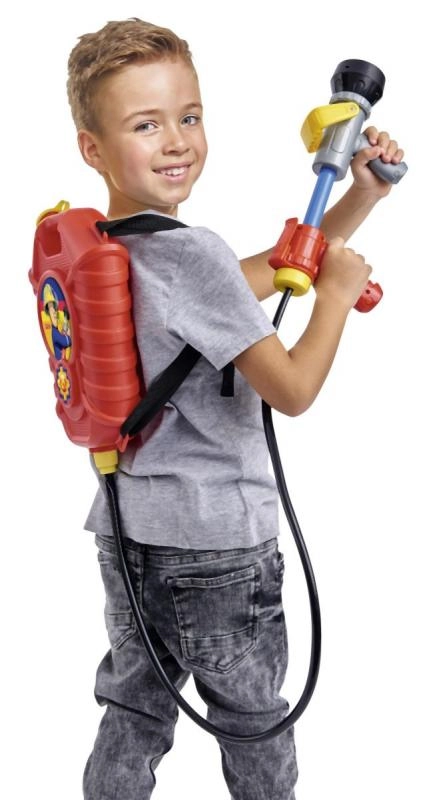 Оборудвайте малките пожарникари със страхотна водна раница, вдъхновена от сериала ПОЖАРНИКАР САМ. Лекият резервоар с нова, аеродинамична форма и регулируеми презрамки се носи удобно дори за по-дълго време. Маркучът с дюза реалистично наподобява пожарникарско оборудване и децата ще се забавляват истински.
