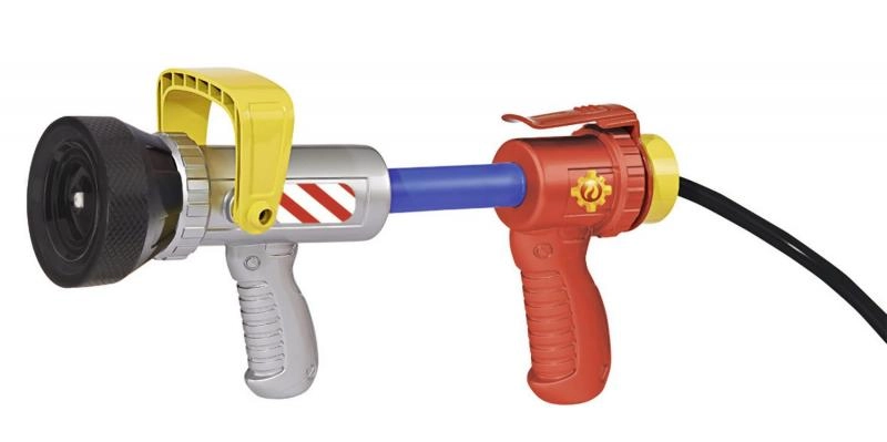 Мощната дюза и маркуч позволяват изпращане на водната струя на разстояние до 10 м. Отлично за външни водни битки и тренировки на малките пожарникари.