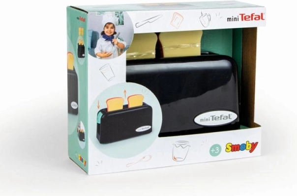 Мини Tefal детски тостер е идеална играчка за деца, които искат да имитират работа в кухнята. Достатъчно е да поставите пластмасовите филийки в тостера и да натиснете превключвателя за механично изваждане.