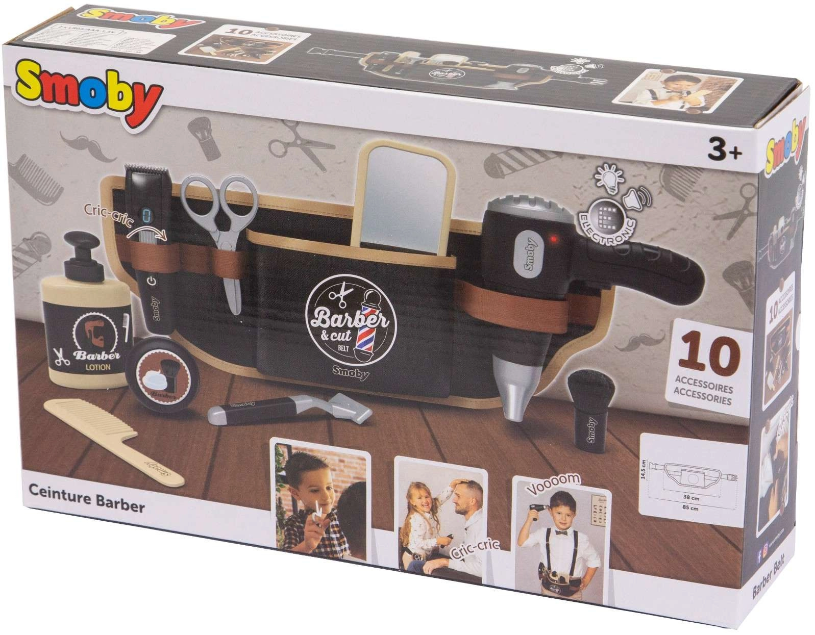 Фризьорският колан за деца Smoby myBeauty превръща всеки ден в забавно салонно приключение. Благодарение на регулируемия колан децата имат всички принадлежности безопасно съхранени и винаги под ръка – от сешоара през ножиците до гребена и самобръсначката. Интерактивният сешоар издава реалистични звуци, така че играта изглежда като истинска.