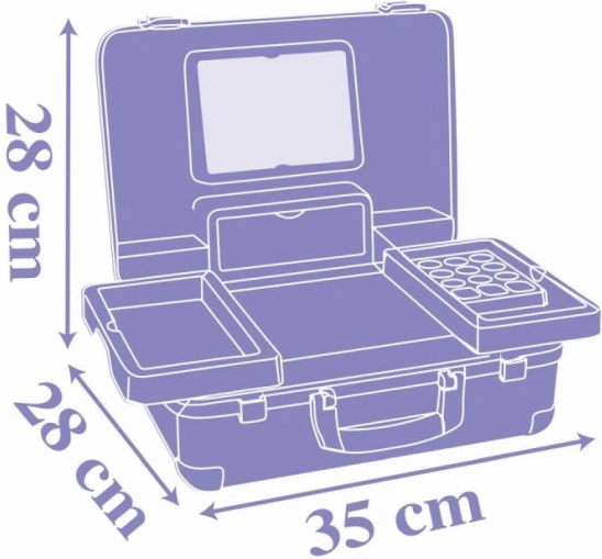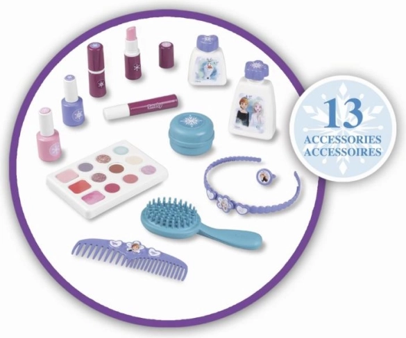 Този комплект за красота от колекцията Frozen е идеален за деца, които обичат да пробват нови неща и да създават различни стилни визии. Благодарение на компактните размери и практичната дръжка преносимият комплект може да се вземе навсякъде. Съдържа: