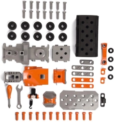 - Допълнен с различни инструменти като отвертка, колела, винтове, гайки и ключ.