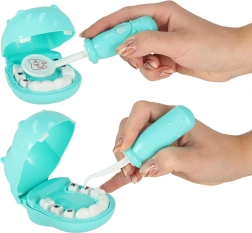 Играта развива фината моторика, въображението и социалните умения. Благодарение на реалистичните аксесоари като огледалце, спринцовка и „бормашина“, децата се учат на правилно почистване на зъбите и рутина при зъбен преглед без стрес.