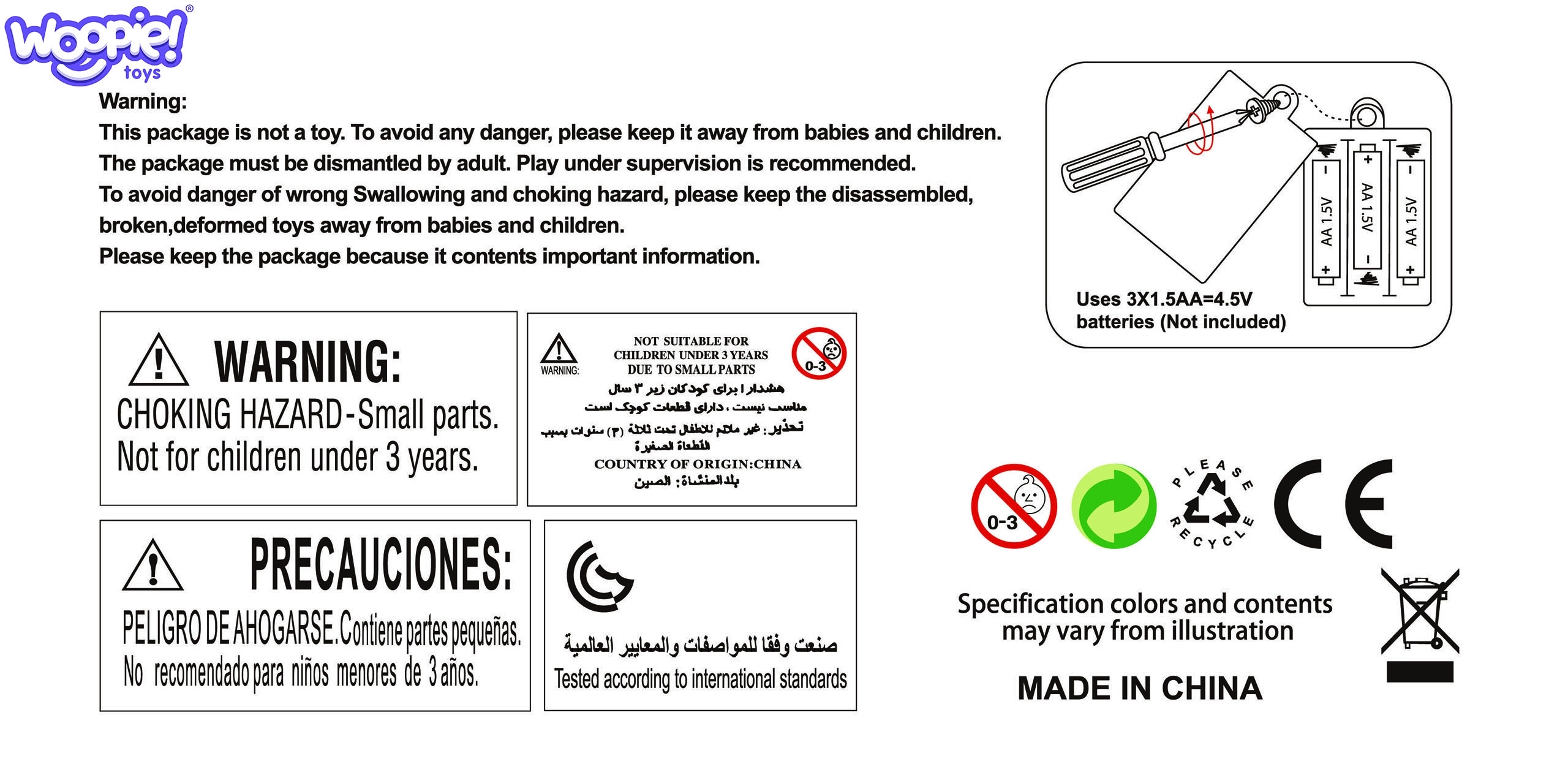 Продуктите не са предназначени за консумация. Необходими са три AA батерии (не са включени в комплекта).