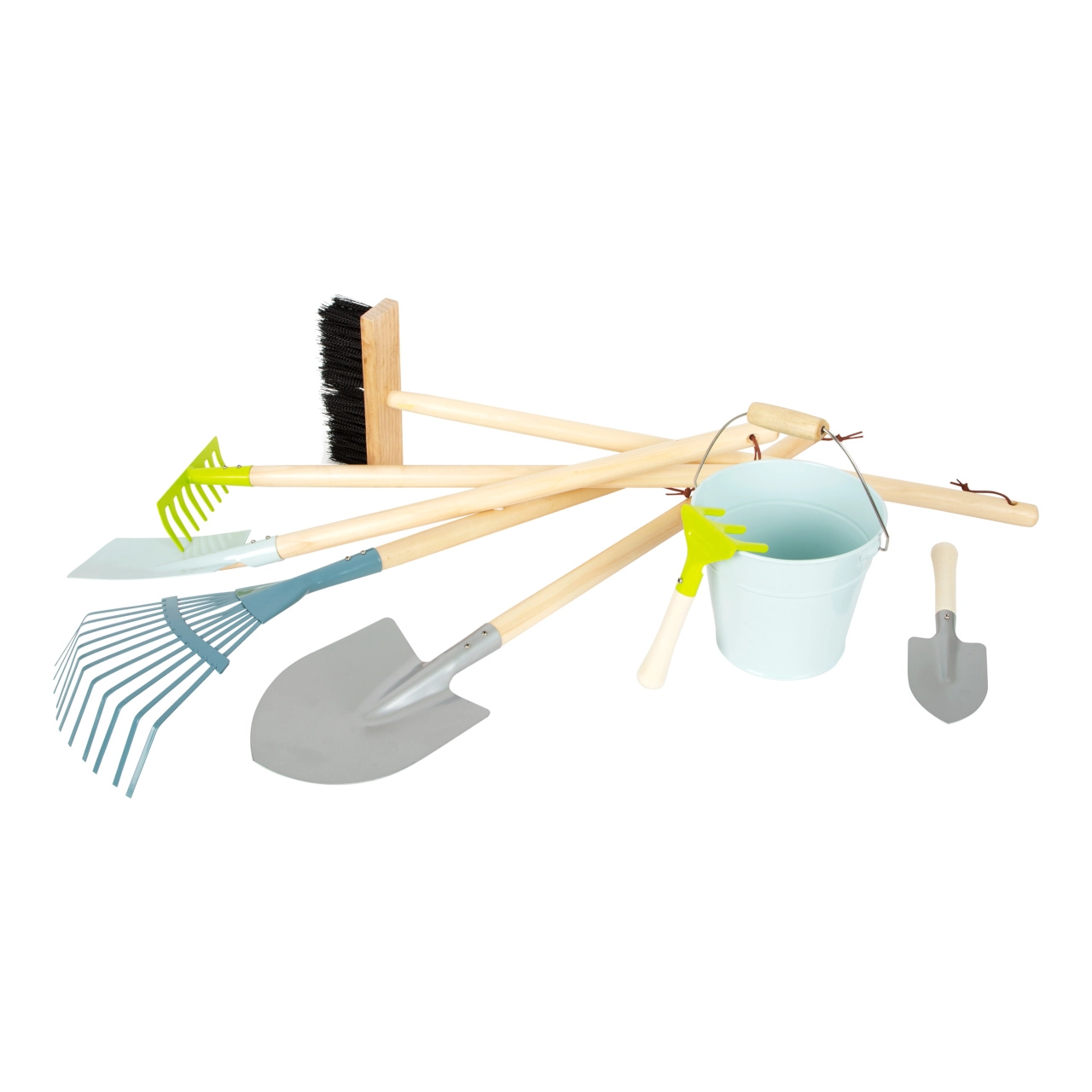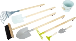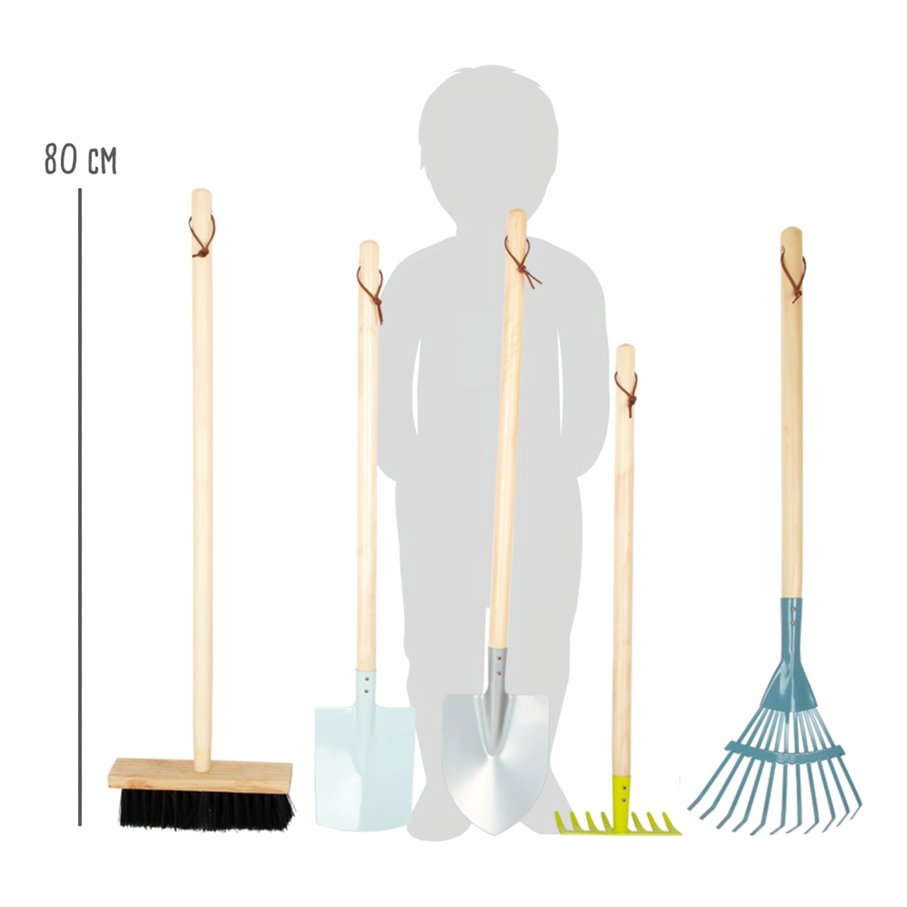 Този голям комплект детски градински инструменти от Small Foot насърчава играта навън и развива сръчността и връзката с природата. В опаковката ще намерите всичко необходимо за малките помощници: лопата за копаене, лопати, гребло, метла и малки градински инструменти. Всеки елемент има дървена дръжка и метална работна част за дълъг живот.