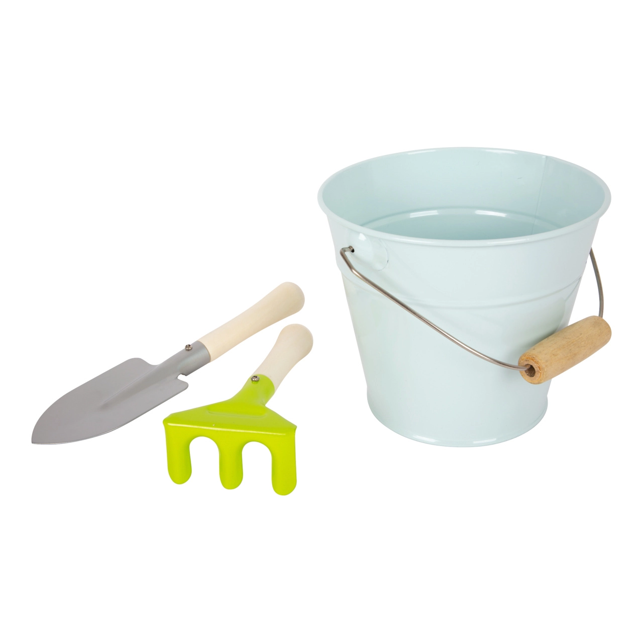Благодарение на практичните окачващи примки инструментите лесно се прибират след работа. Модерната цветова комбинация привлича децата и ги мотивира за редовна игра в градината, почистване и грижа за цветята. Комплектът е идеален за семейни градини, детски градини и детски площадки.