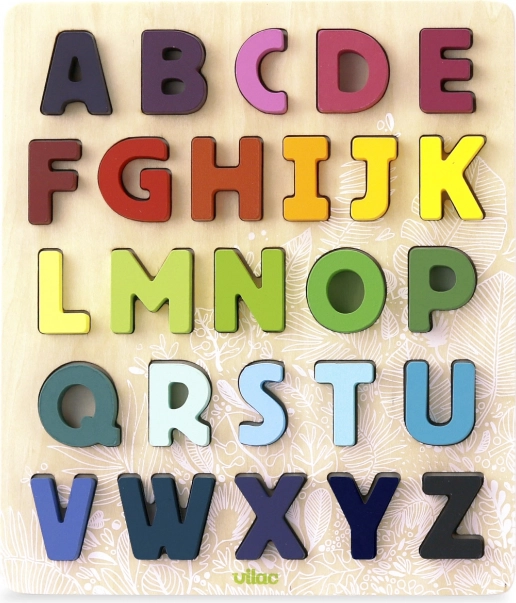 Открийте забавен начин да научите азбуката! Този цветен дървен пъзел помага за развиване на паметта и координацията между ръцете и очите, докато децата учат буквите и съставят думи.