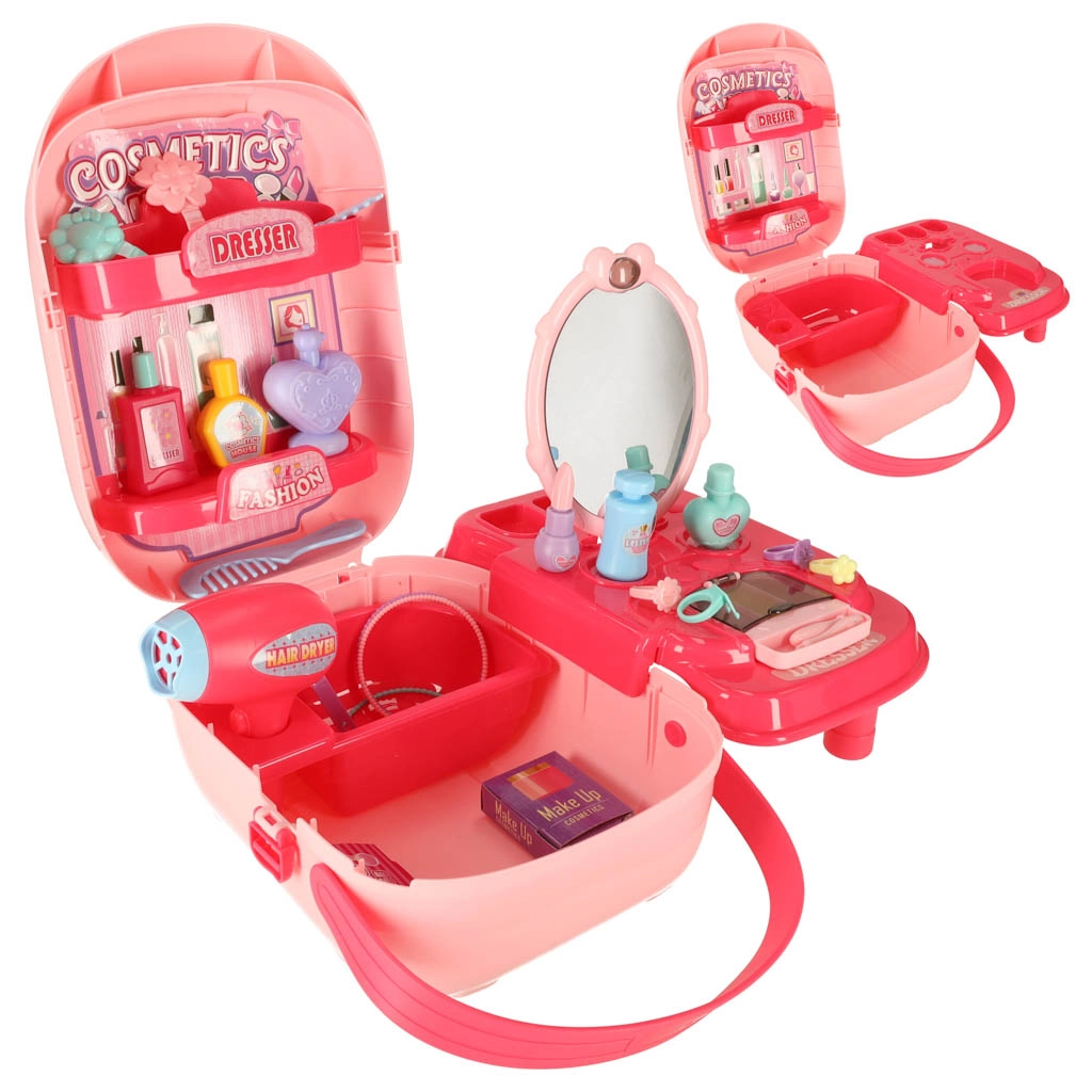 Открийте вълшебен козметичен салон, скрит в лек пластмасов куфар с дръжка. Децата ще се забавляват с игра на фризьор и козметика, ще развият фантазията си и ще се научат да се грижат за своя външен вид по безопасен и игрив начин.