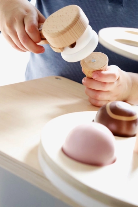 Обогатете детската игра с креативни възможности с дървената стойка за сладолед Fresh. Тази стойка предлага: