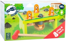 Тази дървена чукалка от SMALL FOOT превръща всеки ден в забавно „ловене“ на къртици в градината. Децата с помощта на дървеното чукче удрят къртиците и наблюдават как с радост изскачат от друга дупка. Простият принцип насърчава концентрацията и носи многократна забава.