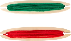 Четири дървени макари с цветна прежда и основни конци позволяват да започнете да творите без допълнителни покупки – просто разопаковайте и тъчете.