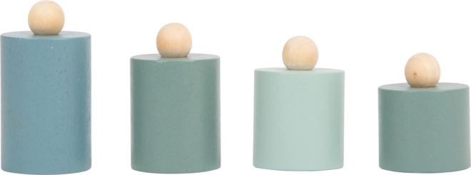 Съдържа 2 купички и 4 гладко обработени тежести в сиво-сини тонове – идеално за детски магазин и за учене у дома.
